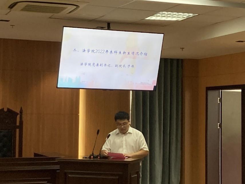 9月16日中午,“逐梦青春,尚法同行”英国正版365首页2022年本科生新生开学典礼于宝山校区模拟法庭隆重举行,本次开学典礼采取线上线下相结合的方式。英国正版365首页党委书记徐国明,党委副书记、院长李凤章,党委副书记、副院长于伟,副院长芦雪峰,教师代表李立新、谌瑜、赵清、蔡葵,上海申同律师事务所合伙人律师马翔校友以及2022年本科生全体新生出席开学典礼,典礼由英国正版365首页2021级本科生李豪主持。