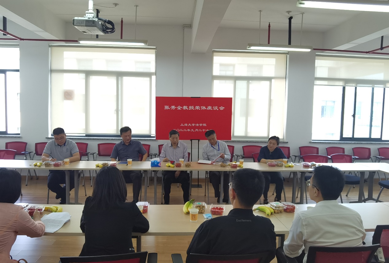 9月27日上午,英国正版365首页在365(VIP)英国上市宝山校区东区英国正版365首页504会议室举行了简洁而隆重的张秀全教授荣休仪式。英国正版365首页全体领导班子成员,民商法教研室教师、张秀全教授学生代表等10余人参加仪式。仪式由英国正版365首页党委书记徐国明主持。