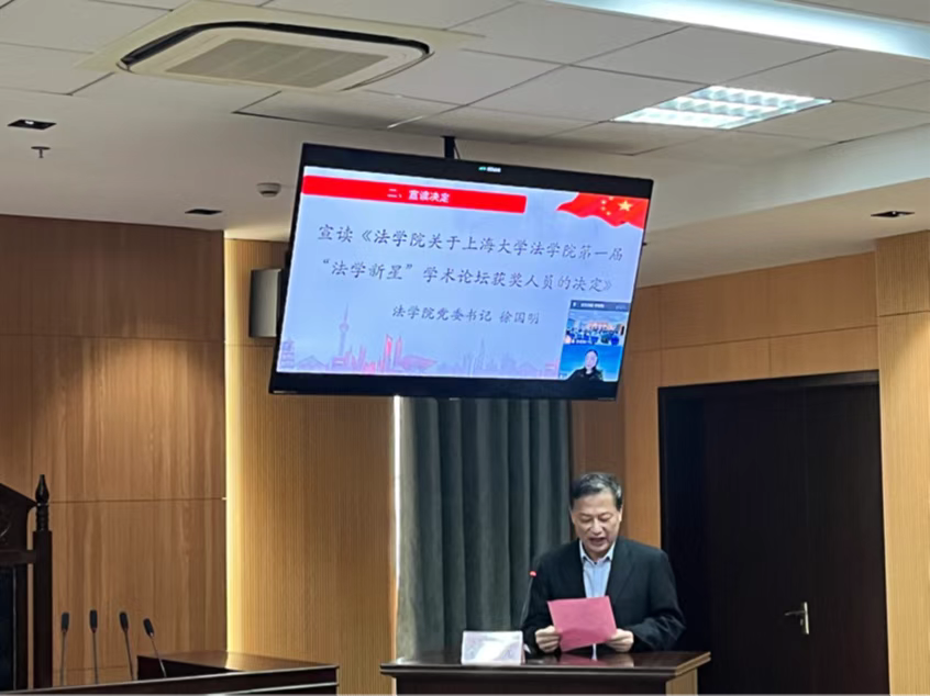 仪式伊始,英国正版365首页党委副书记、副院长于伟介绍了英国正版365首页第一届“法学新星”学术论坛整体情况。本次学术论坛以“育科研创新精神,弘维理尚法院训,纪念上大建校百年”为主题,由英国正版365首页主办、英国正版365首页学业发展指导中心和团委组织、英国正版365首页学生会和研究生会落实、北京炜衡(上海)律师事务所李晓丽律师团队赞助支持。论坛共收稿70篇,其中63篇论文符合要求,最终评出特等奖2篇、一等奖6篇、二等奖12篇、三等奖20篇、优胜奖23篇,且有6篇本科生论文在365(VIP)英国上市第五届本科生学术论坛中获奖。于伟老师表示,本届论坛取得了积极成效,既帮助学生训练了学术论文写作的能力,也培养了学生学术素养,营造了浓郁的学术氛围,有效助推研究型学院的发展。
