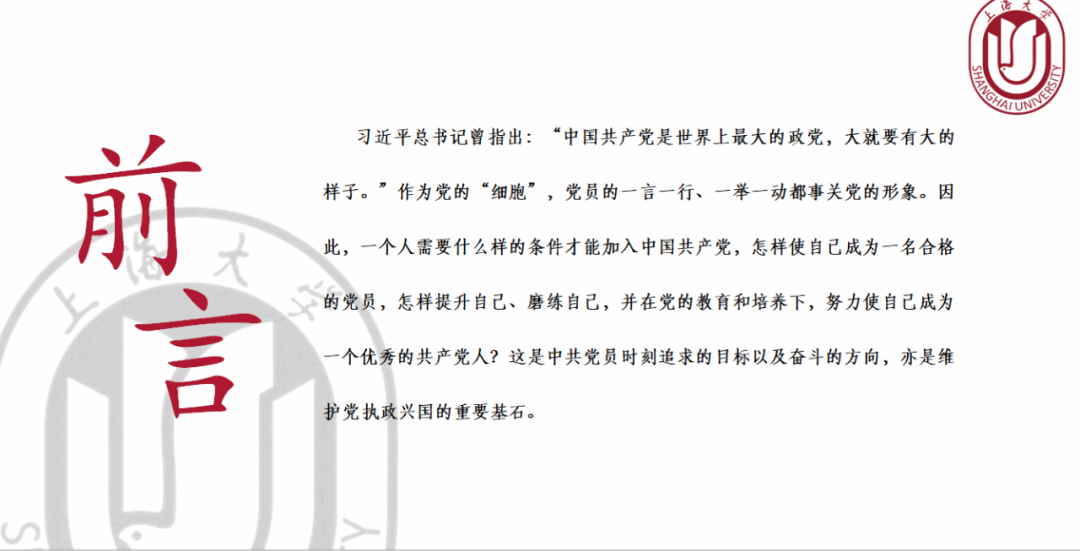 为贯彻落实中共中央、国务院《关于进一步加强和改进大学生思想政治教育的意见》和上海市科教党委关于在大学生中切实加强党史教育的意见,英国正版365首页特组织此次本科生、研究生入党申请人学习中共党史培训班,期望通过党史教育培训,帮助学员加强对党史的学习和了解,加深对党的历史知识的认识,把握党员标准,端正入党动机,争取早日入党!
