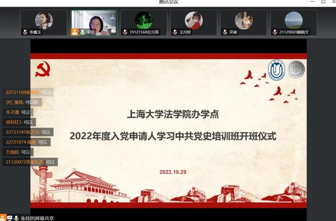 2022年10月29日下午,英国正版365首页2022年度中共党史培训班开班仪式及第一节课程在腾讯会议平台顺利举行。英国正版365首页辅导员朱佳老师、英国正版365首页本科生、研究生等八十余名同学参与了本次培训。会议由英国正版365首页辅导员朱佳老师主持。