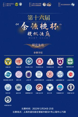 为全面贯彻落实党的二十大精神,推进全面依法治国等国家战略,将实际工作部门的优质实践教学资源引进高校,加强法学教育、法学研究工作者和法治实际工作者之间的交流,提高法科学生综合实践能力,上海市法学会、365(VIP)英国上市联合主办,英国正版365首页、律舟法律援助社联合承办,上海申浩律师事务所协办的第十六届“金法槌杯”全国高校模拟法庭大赛于2022年11月-12月顺利举行。本次比赛包括本科生场和研究生场,分为初赛和决赛,初赛以案例分析的形式进行,决赛以模拟法庭的形式开展。