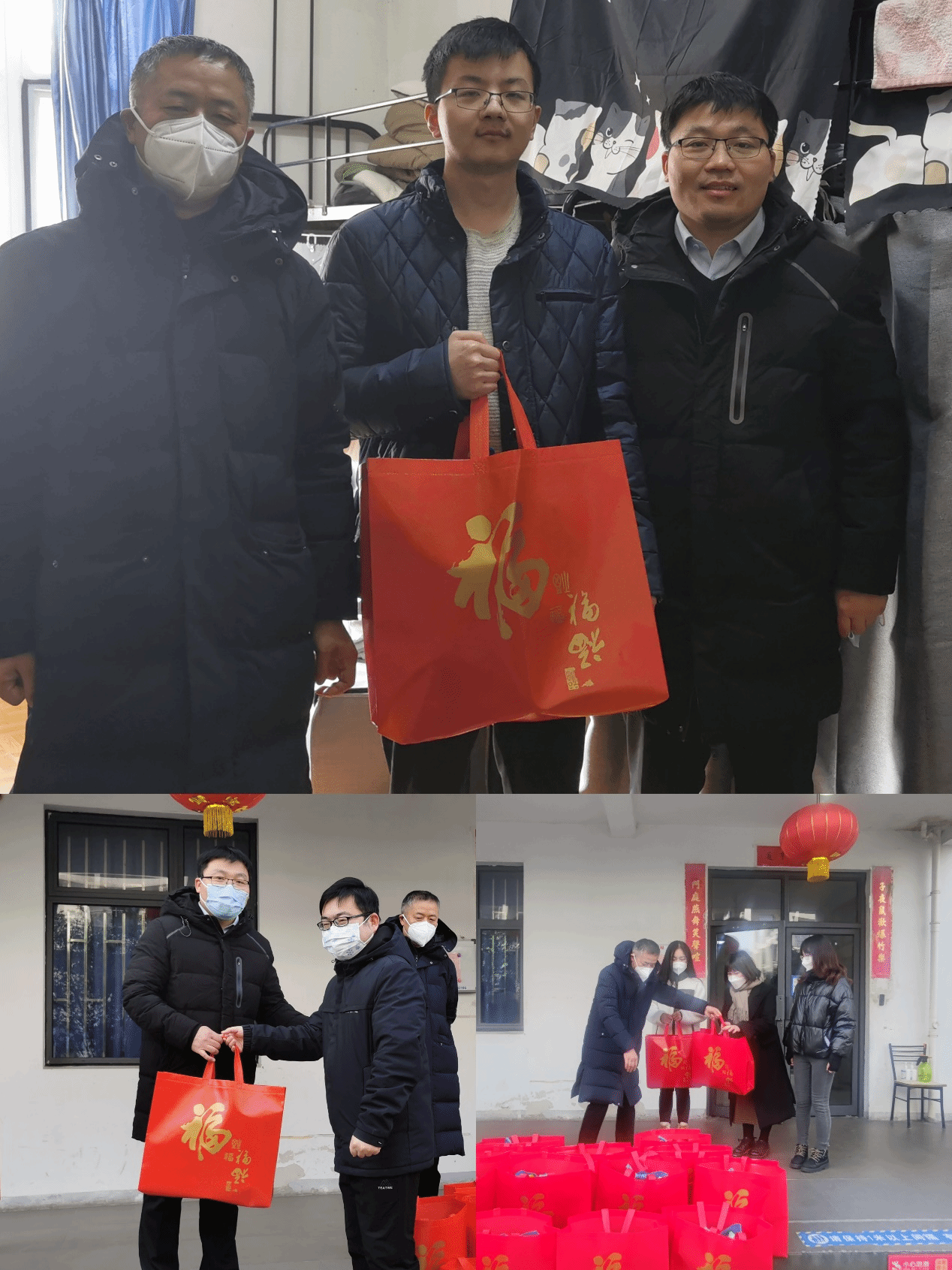 2023年1月21日(农历腊月三十)早上,正值农历除夕,英国正版365首页院长李凤章、副书记、副院长于伟、团委书记林建玲一行来到学生宿舍楼,看望、慰问2023年寒假留校学生,向他们送上诚恳真挚的新春祝福和温暖厚重的新年大礼包。