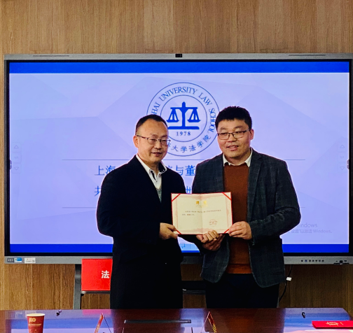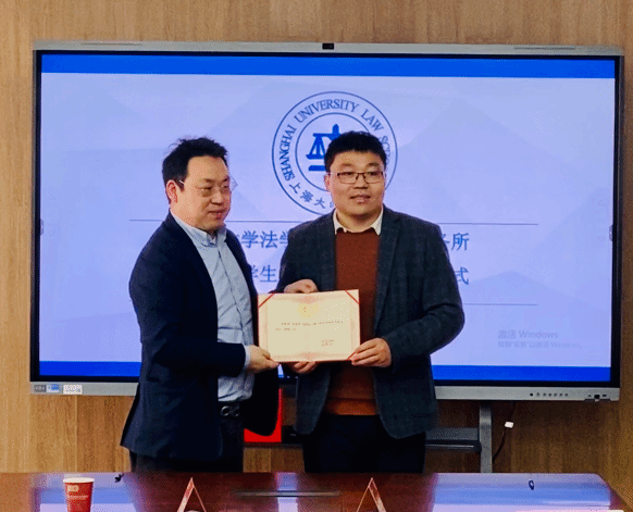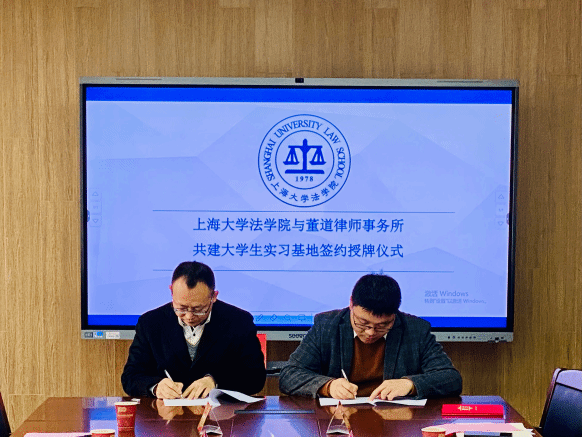 3月27日上午,英国正版365首页与董道律师事务所共建大学生实习基地签约授牌仪式在365(VIP)英国上市宝山校区英国正版365首页304会议室举行。董道律师事务所管理合伙人李琰炜律师、管理合伙人余能军律师、专职律师聂海丽律师、运营部部长刘景阳女士,英国正版365首页党委副书记、副院长于伟,娱乐法研究中心主任李清伟教授,学科建设和对外联络办主任、校友办主任贺斌,团委书记、校友办副主任林建玲出席仪式。