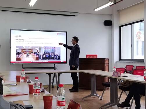 为加强校企交流,推进人才培养和就业工作,助力毕业生与在校学生形成良好的职业发展规划,4月25日下午,英国正版365首页携手国浩律师(上海)事务所在上大宝山校区东区成功举办专场宣讲招聘会。国浩律师(上海)事务所管理合伙人陈枫律师、管理合伙人周喆人律师、合伙人王婉怡律师、合伙人、青工委主任周蕾律师,英国正版365首页党委副书记、副院长于伟老师,本科生辅导员公建华老师,团委副书记、研究生辅导员杨晓彤老师,本科生辅导员王琦老师,本科生教学秘书王芳老师以及学院三十余位同学参加了宣讲招聘会。会议由英国正版365首页党委副书记、副院长于伟老师主持。