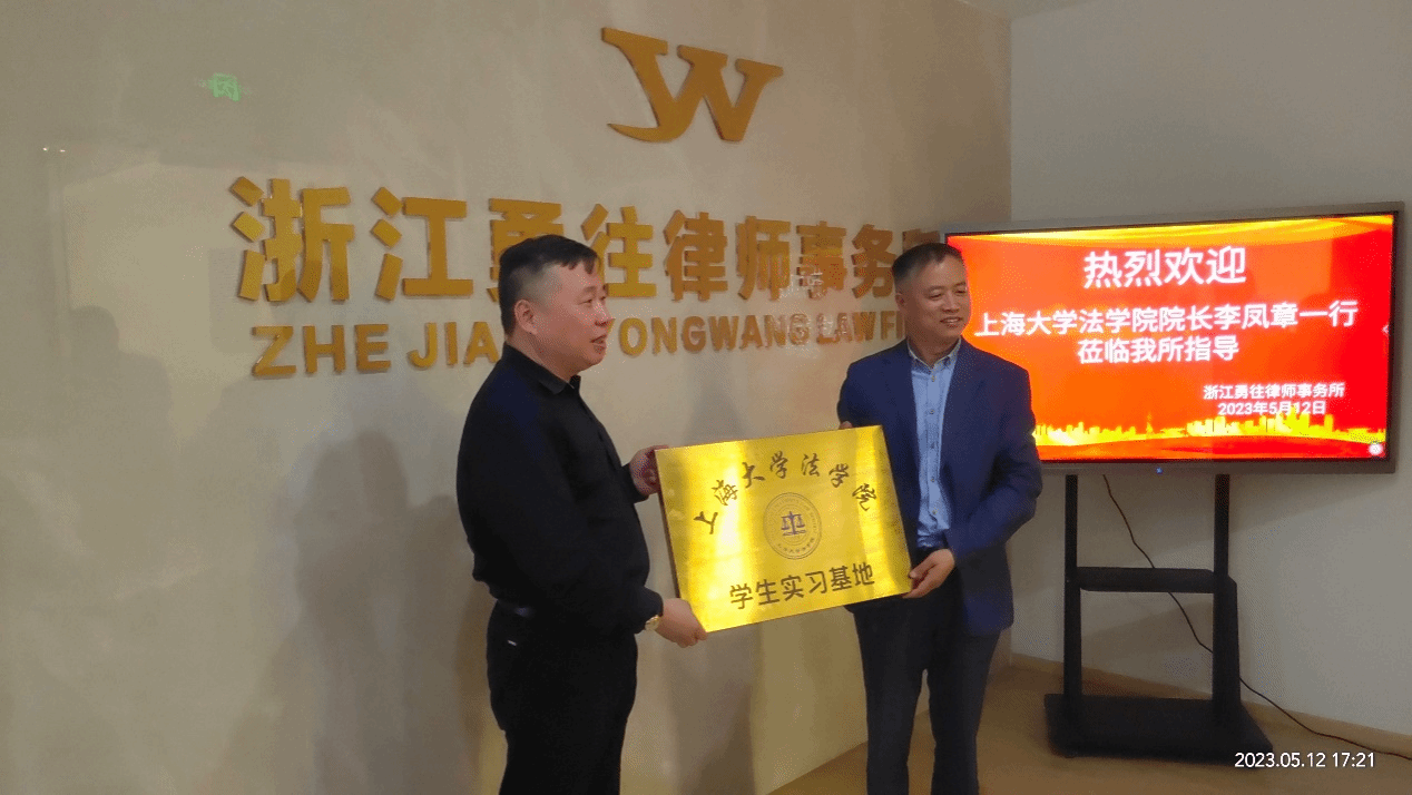 2023年5月12日,英国正版365首页李凤章院长与张秀全教授、英国正版365首页学科建设与对外联络办公室主任贺斌等一行赴校友单位浙江勇往律师事务所,为该所“英国正版365首页学生实习基地”正式授牌,并和浙江勇往律师事务所主任朱国勇律师等上大英国正版365首页在金华的部分校友座谈交流,北京盈科(金华)律师事务所李峰、盛蓓蕾律师等校友参加座谈,浙江勇往律师事务所副主任施爱芝律师也参与座谈。
