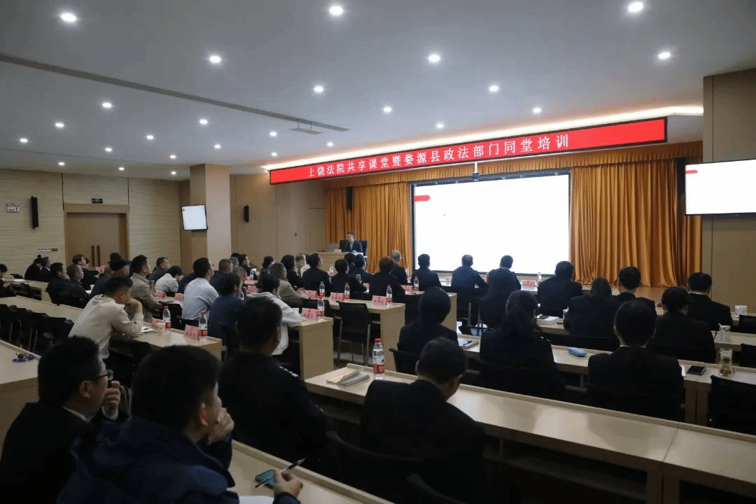 上饶中院也将此次讲座纳入“上饶法院共享课堂”,组织市中院及其他县区法院干警通过视频形式参加此次学习。婺源县委政法委则将此次讲座作为婺源县政法部门同堂培训内容,组织县委政法委全体干部,县检察院、县公安局、县司法局全体领导班子成员、各乡镇政法委员及婺源县人民法院全体干警在会场参加学习。