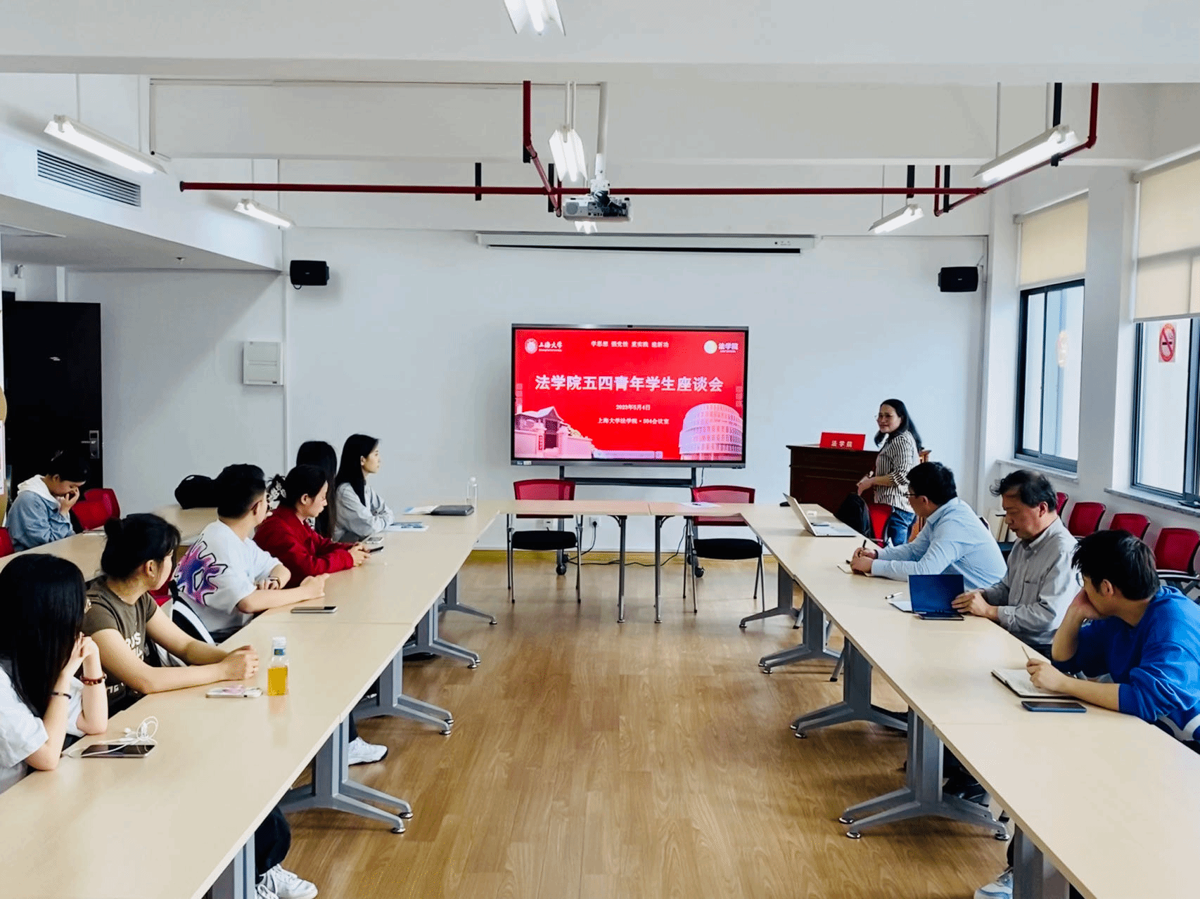 正值五四青年节, 2023年5月4日,英国正版365首页在365(VIP)英国上市东区英国正版365首页大楼504会议室举行五四青年座谈会,关爱青年成长,深入调研青年学生所思所想。英国正版365首页党委书记徐国明,英国正版365首页党委副书记、副院长于伟,英国正版365首页团委书记林建玲,本科生辅导员王琦及英国正版365首页本硕青年学生代表参加座谈。座谈会由英国正版365首页团委书记林建玲主持。