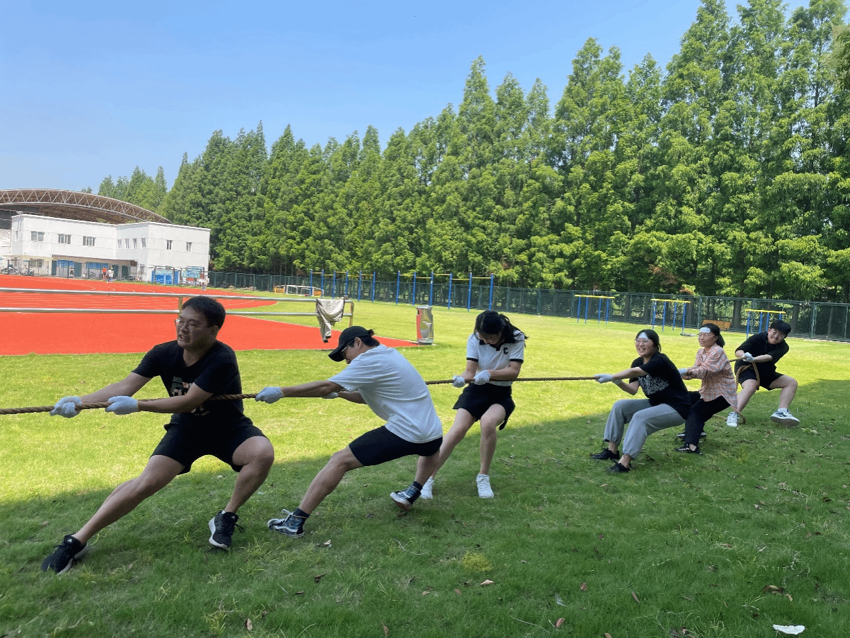 最后一个项目是拔河比赛,同学们通过抽签分为三个组开始比赛,组内获胜的队伍将进入到下一轮,直到三轮比赛结束后决出最终的冠军。所有选手戴好手套,手挨着手,用尽全身力气与对方顽强拼搏。哪怕已经大汗淋漓,身心疲惫,所有选手依然都是全力以赴,不仅展现了同学们顽强的毅力和拼搏精神,更是有着为集体争荣争光的团队意识。