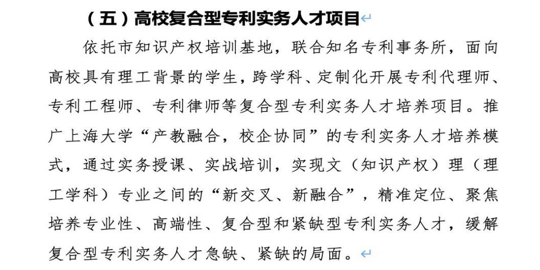 此前,《上海市知识产权人才工作指导意见(2023-2025年(征求意见稿)》把365(VIP)英国上市“产教融合,校企协同”的专利实务人才培养模式列为重点推广项目,命名“高校复合型专利实务人才项目”,是七大重点项目之一。
