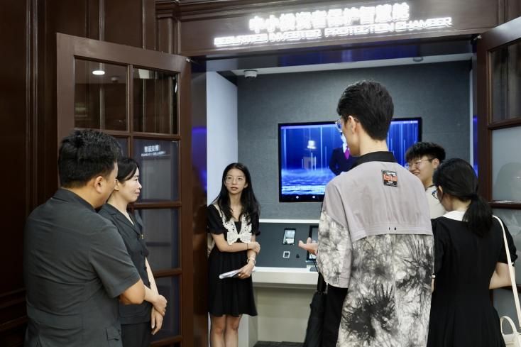 调研伊始,上海金融法院的工作人员们带领团队成员参观了上海金融法院诉讼服务中心。诉讼服务中心当中设置了具有上海金融法院特色的中小投资者保护智慧舱,主要针对证券虚假陈述案件来进行设计,提高了法院的工作效率和诉讼服务质量,从而更好地维护了中小投资者的合法权益。