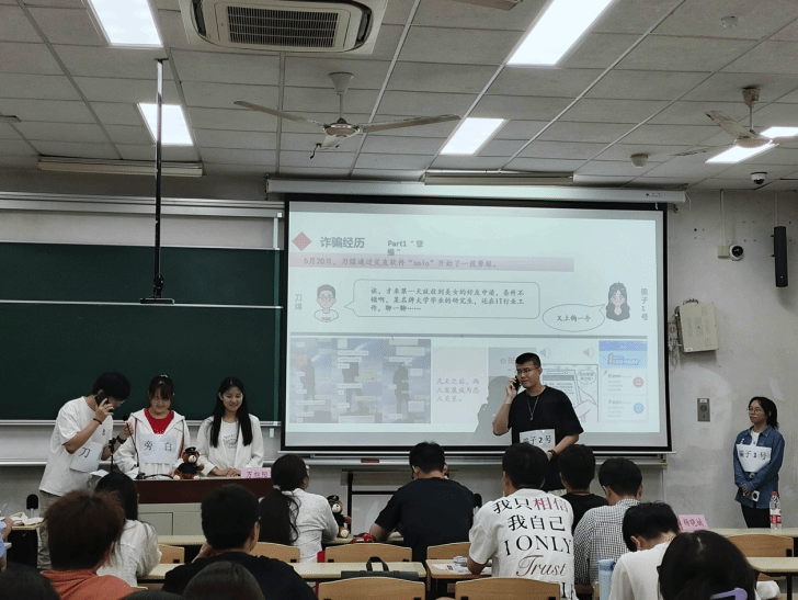 “什么是电信诈骗?”、“电信诈骗是只针对特定的受骗群体进行吗?”“受害者上当受骗的原因都是什么?”,杨警官以三连问为切入点,首先为在场同学们具体阐释了诈骗犯罪分子的行为模型,深入浅出地分析了目前常见的四大诈骗手法及各种诈骗手段的应用。再结合日常生活中的真实案例,通过“以案释法”的方式依次讲解了兼职刷单、虚假游戏交易、“杀猪盘”等大学生容易上当受骗的诈骗手段,此外,杨警官还特别对“卡农”和“跑分”这两种金融诈骗方式进行了科普,告诫同学们切勿掉入“热心帮忙却犯了帮信罪”的陷阱。