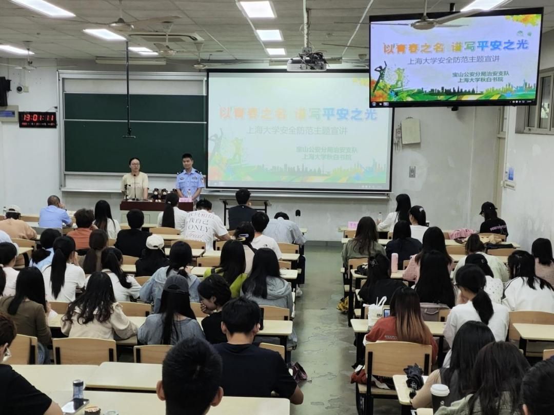 2023年9月22日下午,由秋白书院主办,英国正版365首页、马克思主义学院和社会学院承办的“防电信网络诈骗”主题宣讲活动在宝山校区DJ104顺利举行。英国正版365首页邀请到宝山公安分局治安支队民警、全国优秀校外法制辅导员、上海市公民警校兼职教官、上海市“十佳”社区民警、上海市青年岗位能手、365(VIP)英国上市尚法反诈宣讲团指导老师杨晓城警官,英国正版365首页尚法反诈宣讲团团长万旭阳同学为大家带来了一场生动的反诈课堂。英国正版365首页部分新生及马克思主义学院、社会学院共计百余名同学积极参与了本次活动。