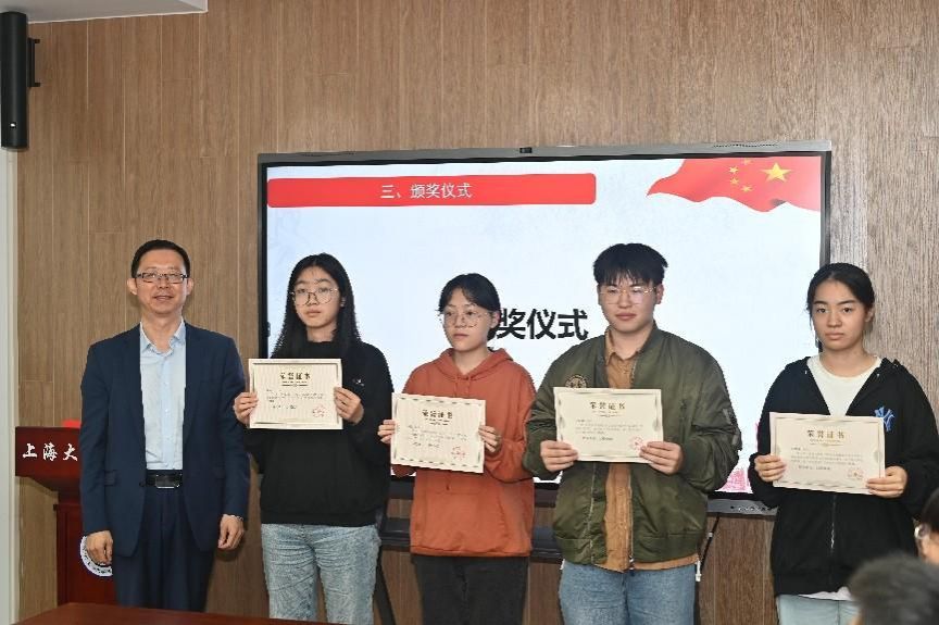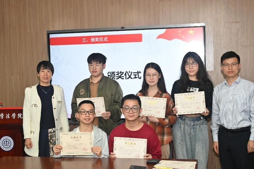 在颁奖环节,上海铸达律师事务所党支部书记桑海滨、创始合伙人戚建国、合伙人刘华北、校党委研工部副部长席慧霞、校学工办副主任何卓衡、分别为第二届“法学新星”学术论坛获奖同学颁奖。