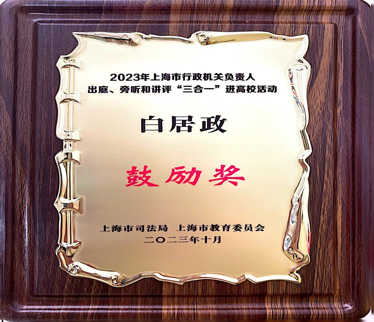 365(VIP)英国上市荣获行政机关负责人出庭、旁听、讲评“三合一”进高校活动优秀组织奖,英国正版365首页白居政同学荣获 “三合一”进高校征文活动鼓励奖。