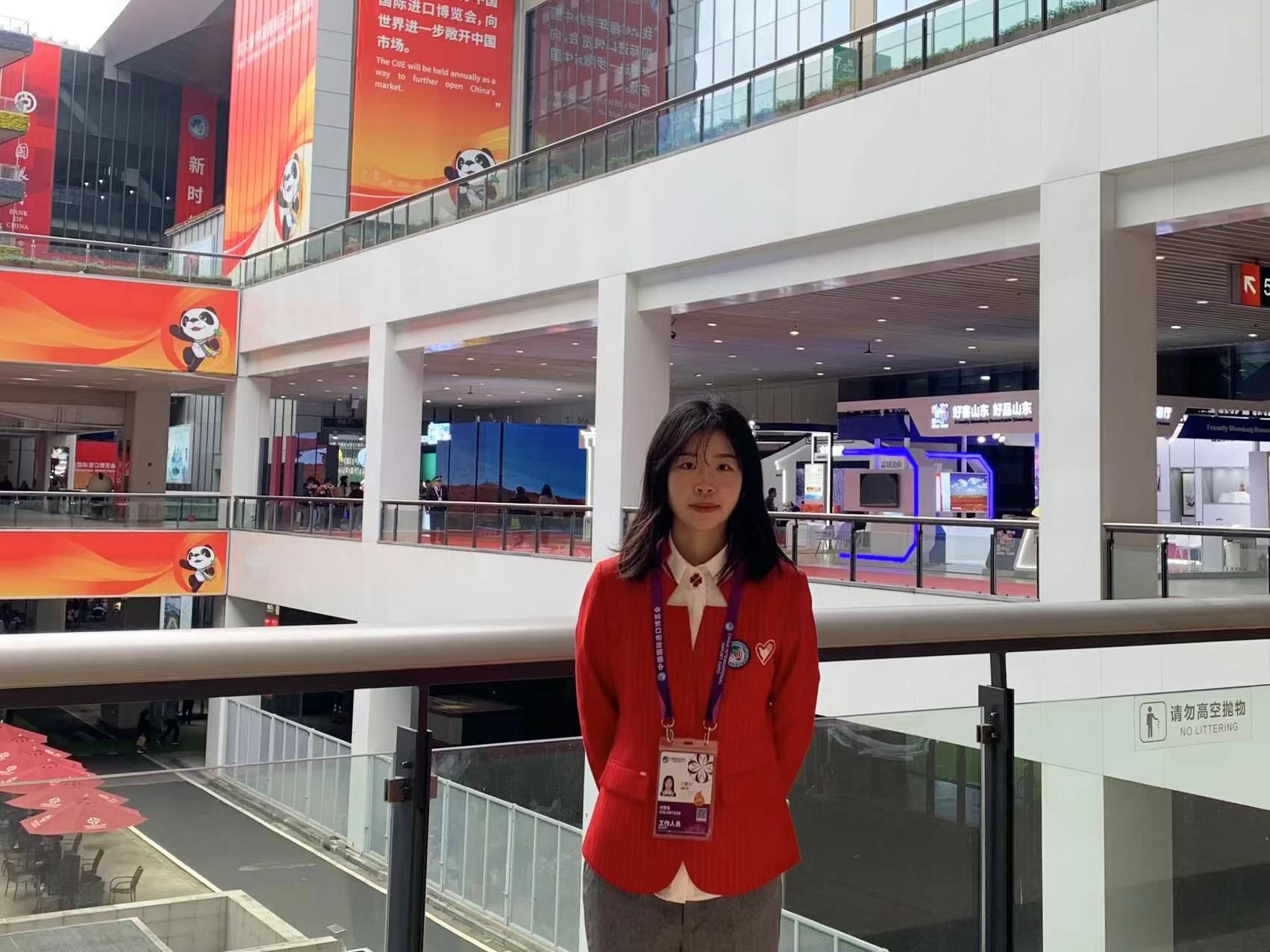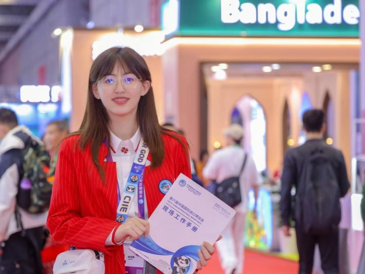 在进博会期间,我作为国家展365(VIP)英国上市志愿者联络员,主要负责国家展365(VIP)英国上市志愿者的协调对接,以及与各国别展台人员的沟通交流等工作。