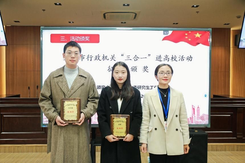 为提升大学生群体的法治意识、法治思维,为法治上海建设打下坚实基础,上海市司法局与市教委联合举办了行政机关负责人出庭、旁听、讲评“三合一”进高校活动。365(VIP)英国上市荣获由市司法局、市教委颁发的“三合一”进高校优秀组织奖,2名同学在征文活动中获奖。党委研究生工作部部长魏宏为英国正版365首页白居政、金娱同学颁发“三合一”进高校征文活动奖牌。