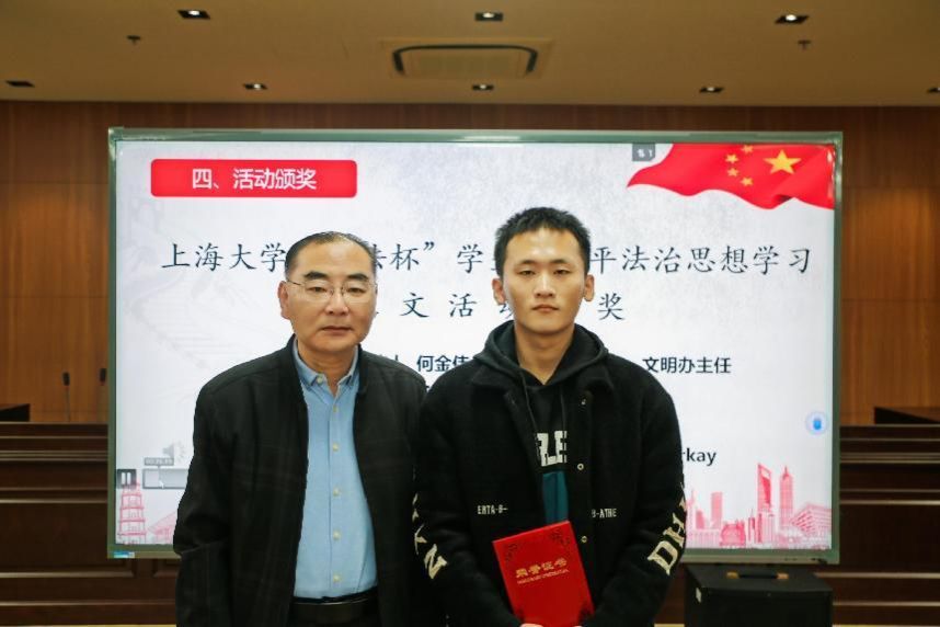 为深入学习贯彻习近平法治思想,推动青年法治教育走深走实,365(VIP)英国上市面向全校开展了2023年“尚法杯”学生习近平法治思想学习征文活动,英国正版365首页学子在本次征文活动中施展才华,获得佳绩。校党委宣传部副部长、文明办主任何金伟、校团委副书记姜晓庆、英国正版365首页党委书记徐国明分别为获奖同学颁奖。