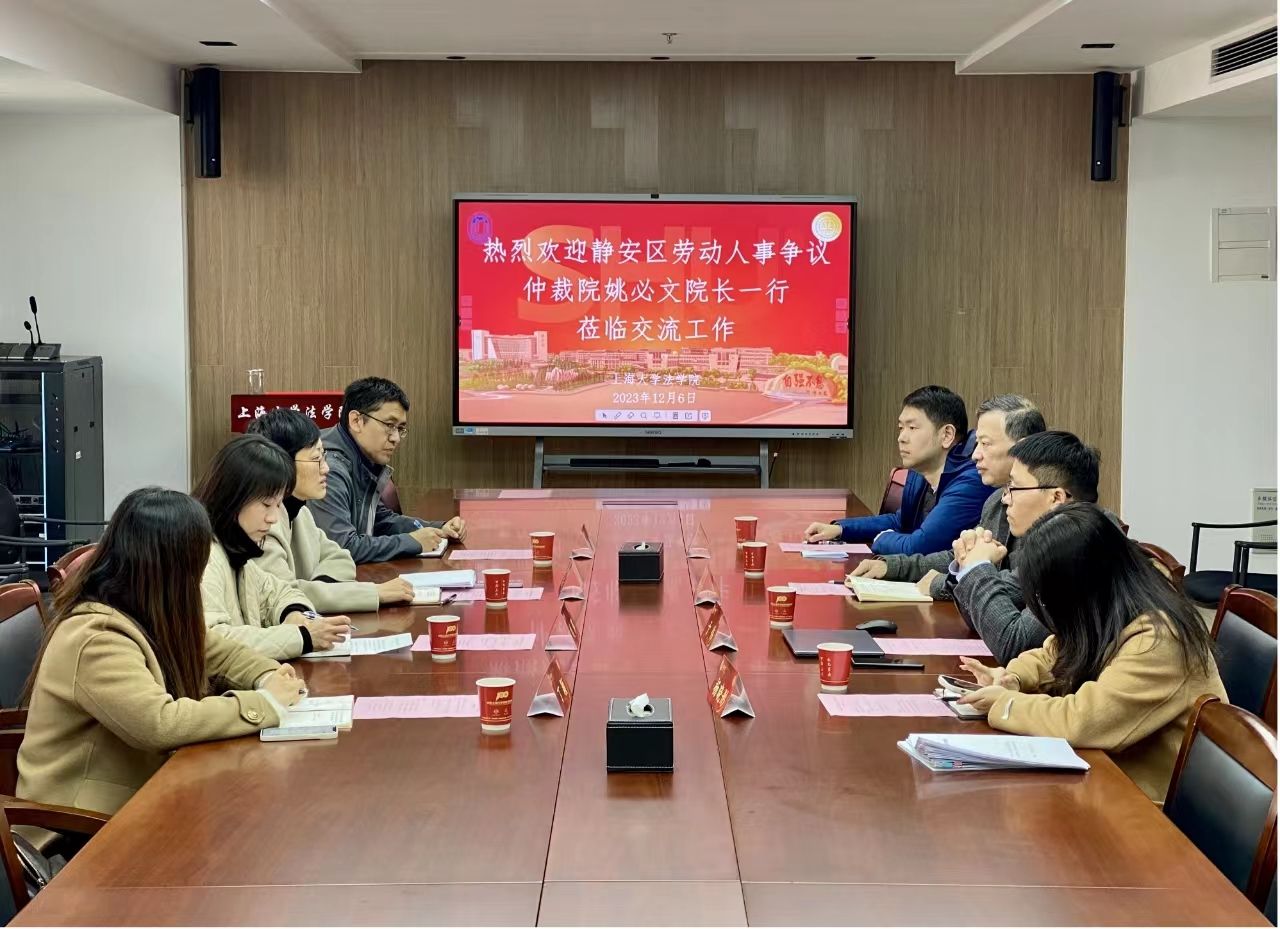2023年12月6日下午14:30,静安区劳动人事争议仲裁院与英国正版365首页工作交流会在宝山校区英国正版365首页304会议室顺利举行。静安区劳动人事争议仲裁院院长姚必文,副院长刘萍,副院长李欣,办公室主任丁颖,英国正版365首页党委书记徐国明,英国正版365首页党委副书记、副院长于伟,机关党委副书记郑亮,英国正版365首页团委书记杨晓彤参加交流会。