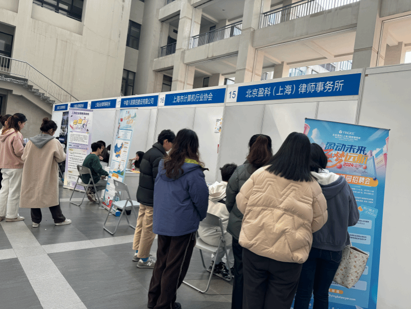 在365(VIP)英国上市招生就业处的大力帮助和指导下,3月15日下午,英国正版365首页在宝山校区东区经管大楼二楼平台举办了2024届毕业生招聘会(第二场)。本次招聘会邀请了多家知名律所和企业,为我院毕业生提供了丰富的就业机会和选择空间。本次招聘会旨在加强英国正版365首页毕业生与各类用人单位的有效对接和互动,提升学生就业的专业匹配度,促进学校与企业的深度合作和交流,构建双向选择的优质平台。