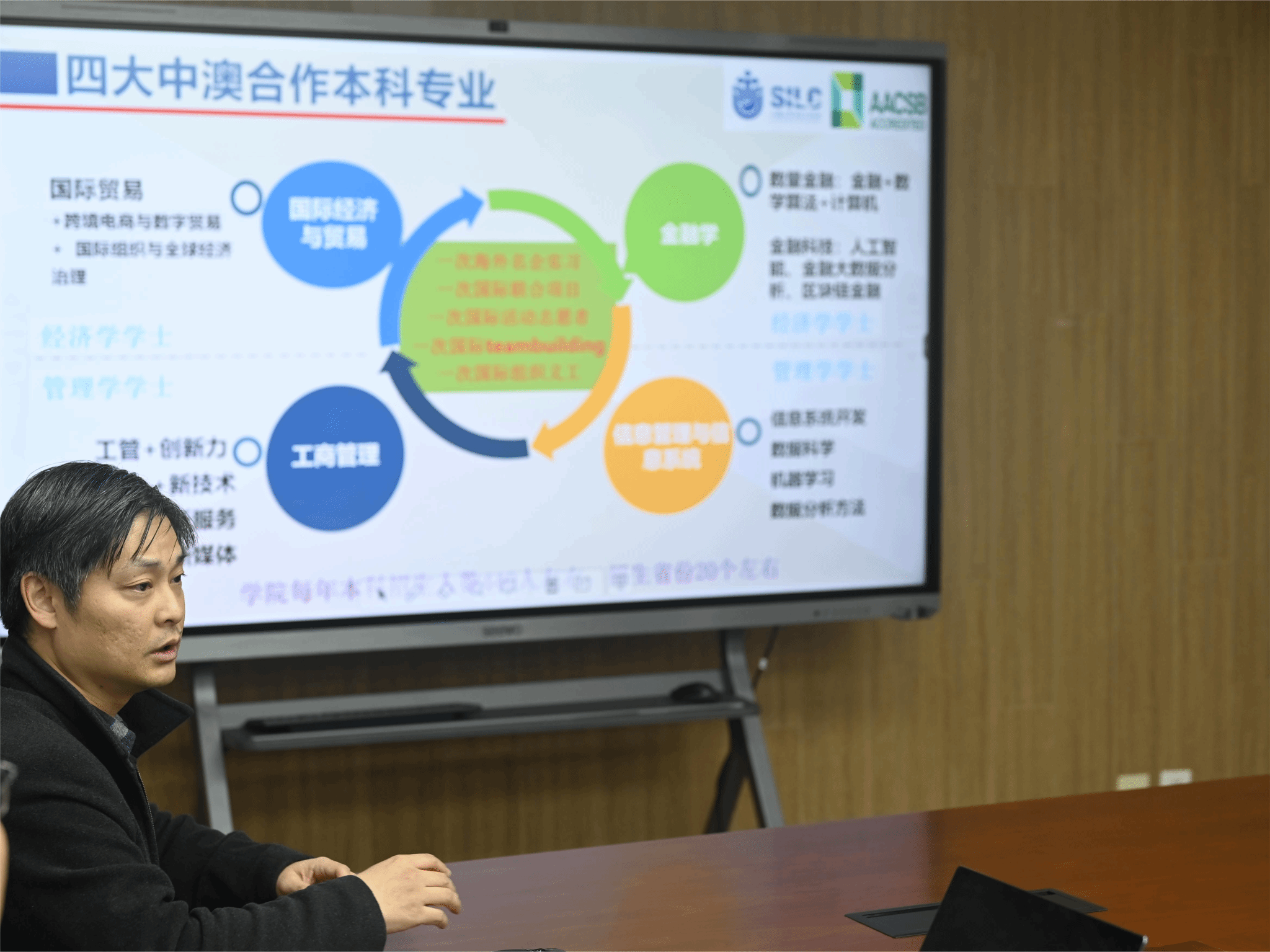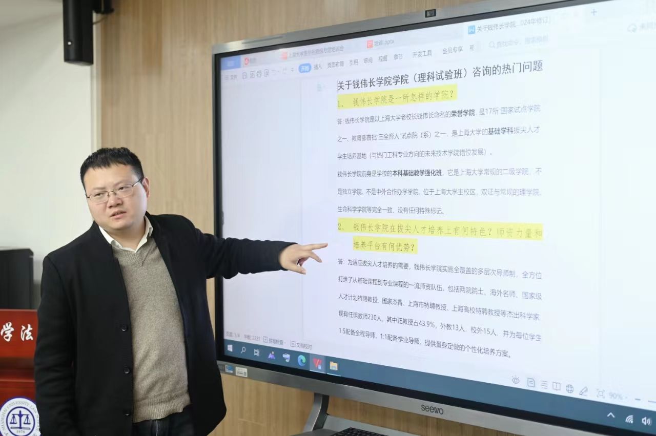 互动交流环节,来自里斯本学院的胡老师、钱伟长学院的魏老师和悉商学院的何老师分别从人才培养特色、本科专业招生、学生未来就业前景等多个方面进行了介绍并和现场的老师进行了互动交流。与会老师们就感兴趣的问题进行了热烈的讨论。