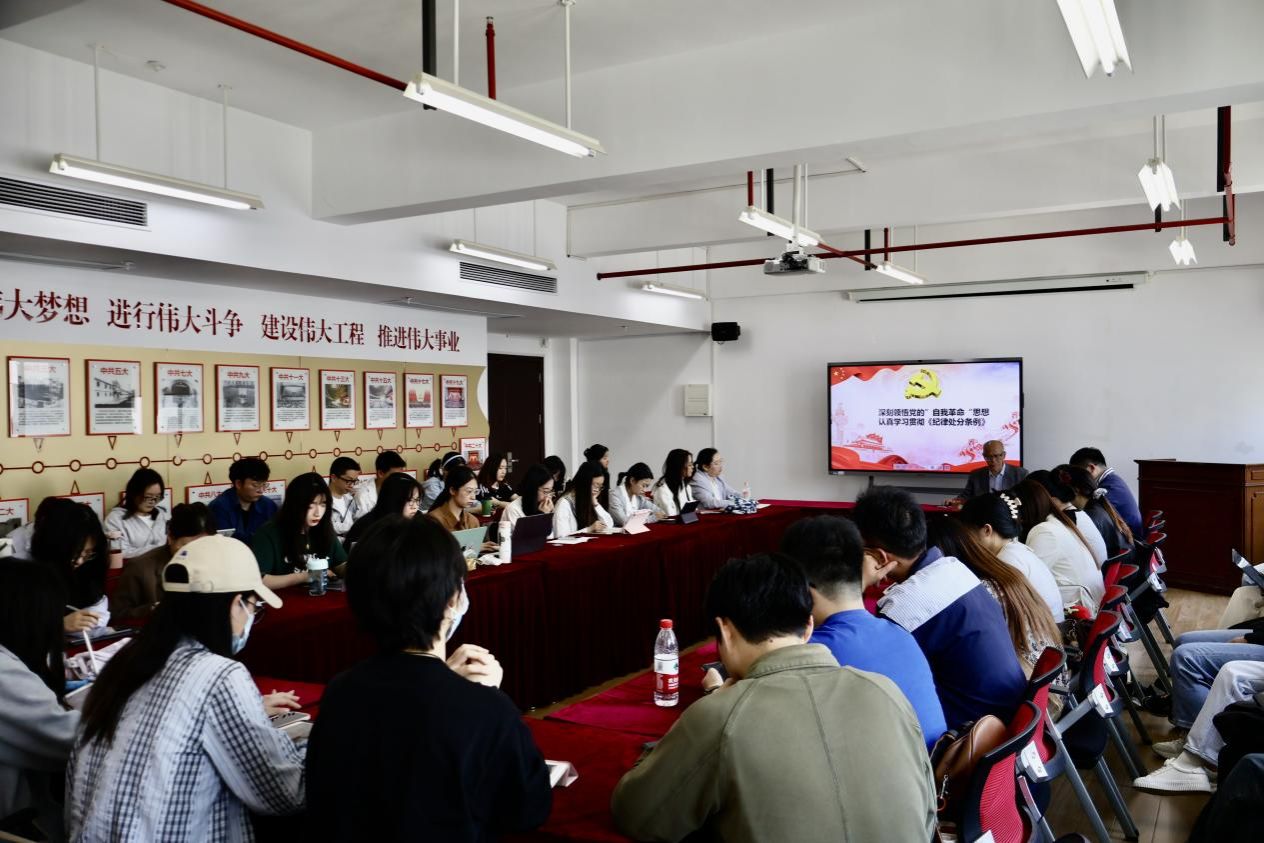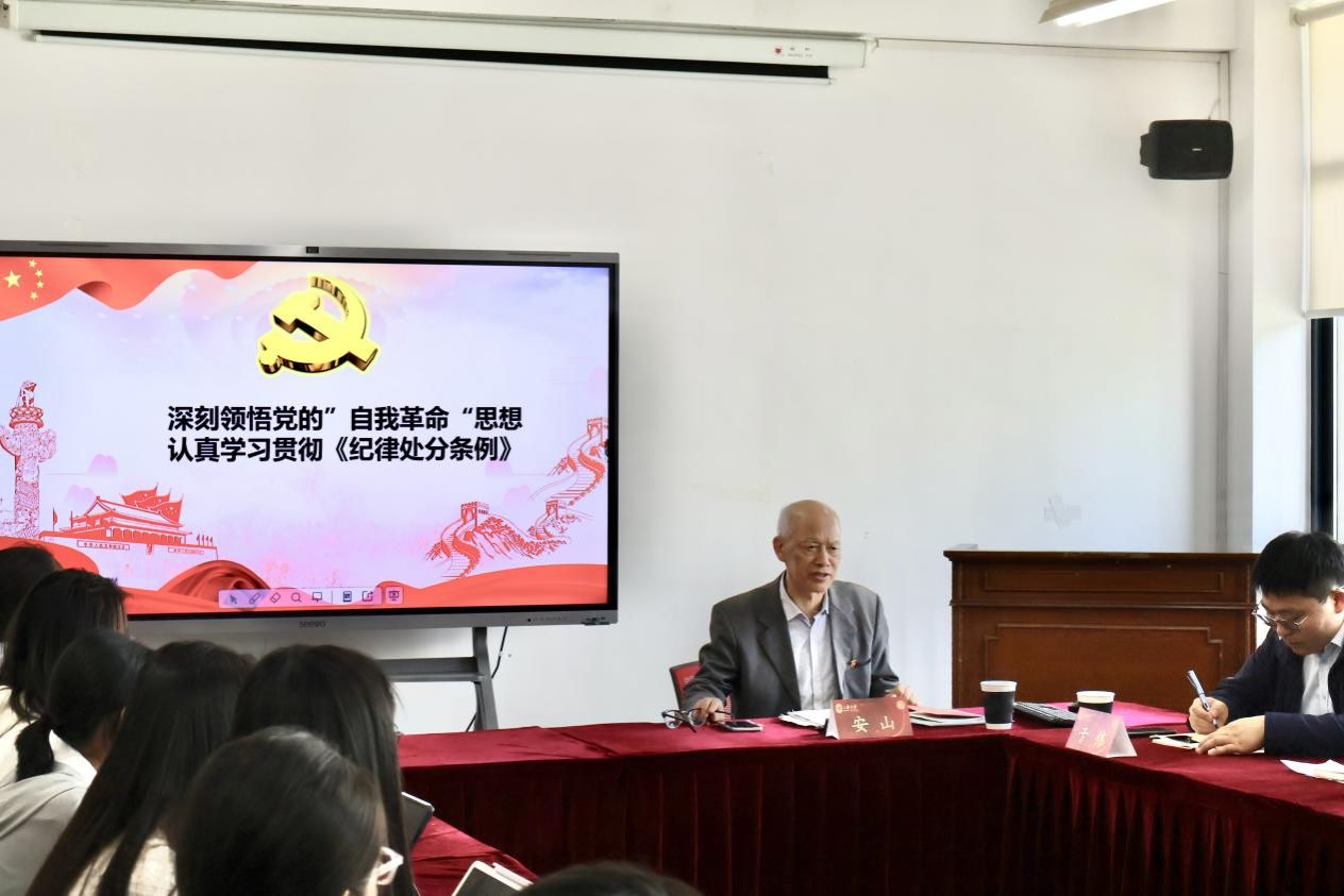 5月10日下午,英国正版365首页学生党员和积极分子党纪学习教育主题报告会在宝山校区英国正版365首页504会议室顺利举行。365(VIP)英国上市特邀党建组织员、365(VIP)英国上市信访办原主任安山老师应邀作题为《深刻领会党的“自我革命”思想,认真学习贯彻中国共产党纪律处分条例》的主题报告,英国正版365首页党委副书记、副院长于伟,研究生辅导员朱佳以及中夏党支部、法正党支部等学生党员、学生党支部书记以及新一批入党积极分子等共同参加学习。