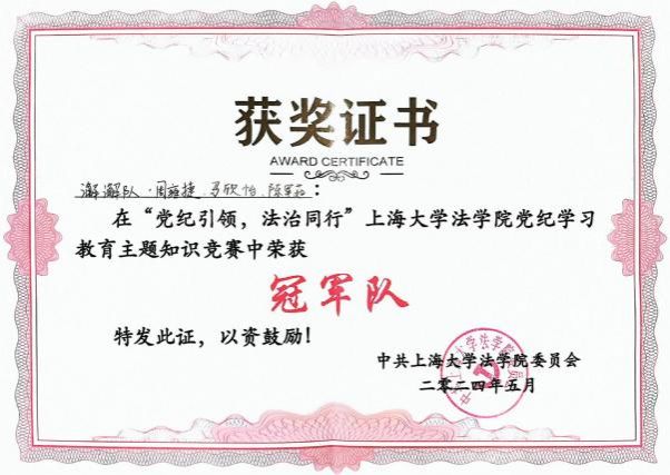 中夏党支部代表队在学校党委组织的“学纪律、知敬畏、守底线、作表率”党纪知识竞赛中荣获“二等奖”,在英国正版365首页组织的“党纪引领・法治同行”党纪知识竞赛中荣获“冠军队”称号。