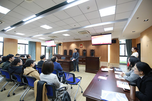 随后,宪法与行政法学专业2017级研究生于欣悦作为学生代表进行了原创作品《一名宪法学生与宪法》的演讲。陈敬根介绍了我校依法治校工作和上海教育法治研究中心的筹建情况。