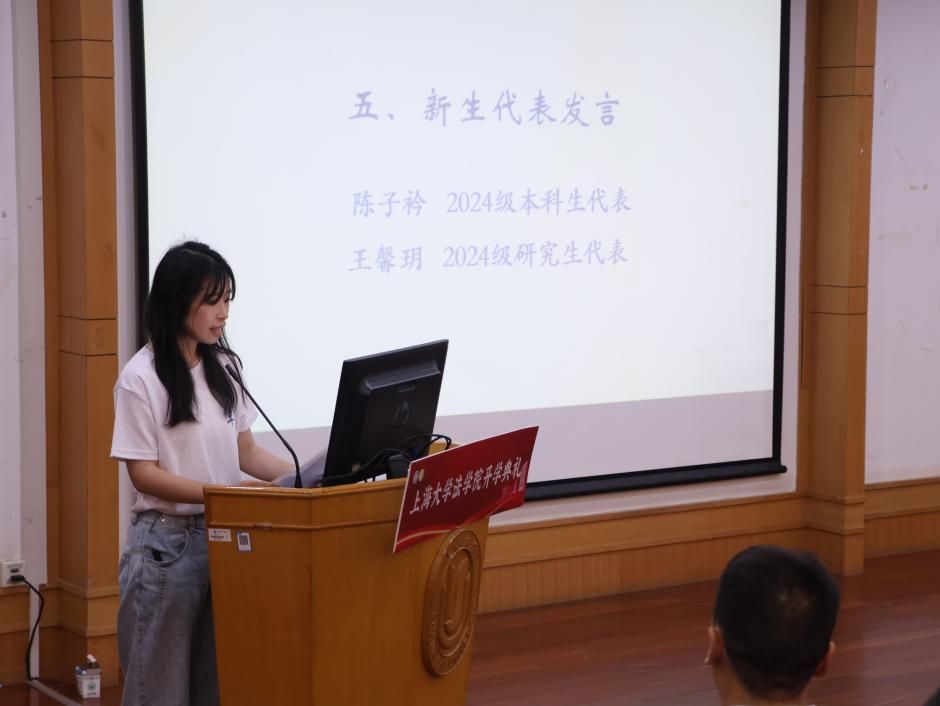 2024级本科生陈子衿、2024级研究生王馨玥作为新生代表发言。两位新生代表的精彩发言谈及自己对新环境的初步感受,以及对大学、研究生生活的期待和憧憬,回顾过去,展望未来,在英国正版365首页相聚,共同绘制新篇章的蓝图。