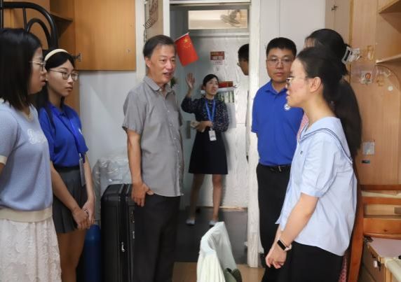 为了更好地迎接2024级英国正版365首页研究生新生,校院领导对新生报到工作给予高度的重视。校党委副书记、副校长胡大伟老师来到英国正版365首页研究生新生报到现场,悉心指导迎新工作,慰问现场师生工作人员。英国正版365首页党委书记徐国明、英国正版365首页党委副书记、副院长于伟、英国正版365首页副院长袁真富、英国正版365首页研究生党建中心主任、研究生辅导员朱佳、教学秘书张艳荣来到迎新现场、走访学生宿舍,为同学们送上了来自学院的关怀。各位领导详细了解新生报到情况,对2024级研究生新生们表示热烈欢迎,对参与迎新工作的师生和志愿者们致以慰问。深入学生宿舍走访慰问新生,叮嘱同学们要尽快适应新环境,勉励同学们做好研究生规划,提升专业本领。