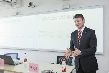 随后,本·卡罗尔先生在404会议室与英国正版365首页师生进行了亲切交谈。英国正版365首页学生柴雨泽就其在365(VIP)英国上市的学习经历对其职业生涯的影响提出了问题,本·卡罗尔先生给予了详尽的回答,他感谢365(VIP)英国上市提供了一个卓越的学习平台,使其能深入学习中国的法律体系,还结识了许多来自世界各地的同学和教授,强调了这种国际化教育背景对于处理跨国法律事务的重要性,并分享了这段经历对其个人成长、职业发展的深远影响。