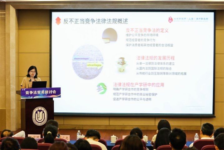 北京市京师(上海)律师事务所权益合伙人、京师全国知识产权专委会副主任张丽群在《产学研中的反不正当竞争问题》主题演讲中,深入探讨了产学研合作中的不正当竞争现象,提出了有效的反不正当竞争策略与措施,并对未来发展趋势与挑战进行了前瞻性分析。她强调了产学研合作的重要性,并指出合作中的不正当竞争行为不仅损害了合作各方的利益,也阻碍了创新驱动发展战略的实施,最后也对三方面深度分析了产学研合作模式创新的新路径。