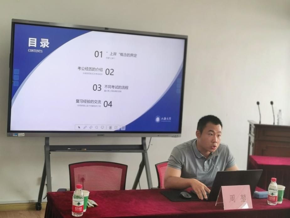 周堃,2021级法律(非法学)硕士,目前在上海市政法委工作,先后参加2024年上海市选调生、国家公务员考试、上海市考、北京市考、宁波市事业单位考试,具有丰富的考公经验。周堃主要结合自身的实际情况,从上岸概念的界定、考公经历与考试时间情况的介绍、上海市选调生的流程介绍以及复习规划四个方面进行讲解。他首先提醒同学们一定要考虑清楚自己考公的决心和愿意对此付出的代价,要敢于在时间安排上进行取舍。随后结合自己在报考事业单位、选调生、国考、市考的经历,向大家简明扼要的讲解了不同考试的大致情况和考试时间,提醒同学要做好时间规划。周堃以上海市选调生为例,向同学们介绍了报考的参考依据和地区推荐,提醒同学要结合自己的情况进行选择,提前了解面试形式、志愿的协调与选择、改革后的注意事项等情况。最后,他提醒同学们要做好复习规划,根据具体考试安排刷题计划,学会取长补短与取舍,形成自己的答题顺序与规划,并注重模拟考试的结果进行经验总结。
