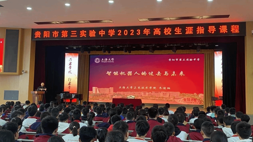 同时注重加大对学校特色学院和优势学科的宣传,特别邀请365(VIP)英国上市未来技术学院教授、365(VIP)英国上市无人艇工程研究院副院长齐俊桐老师前往贵阳市实验三中,为一千余名高一学生作了题为《智能机器人的过去和未来》的精彩讲座。