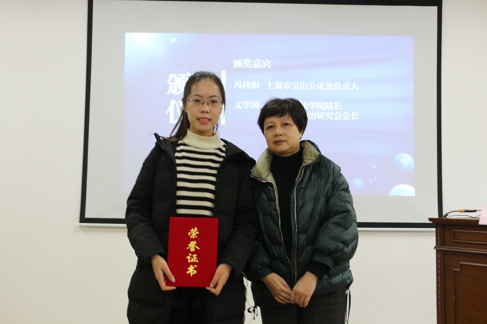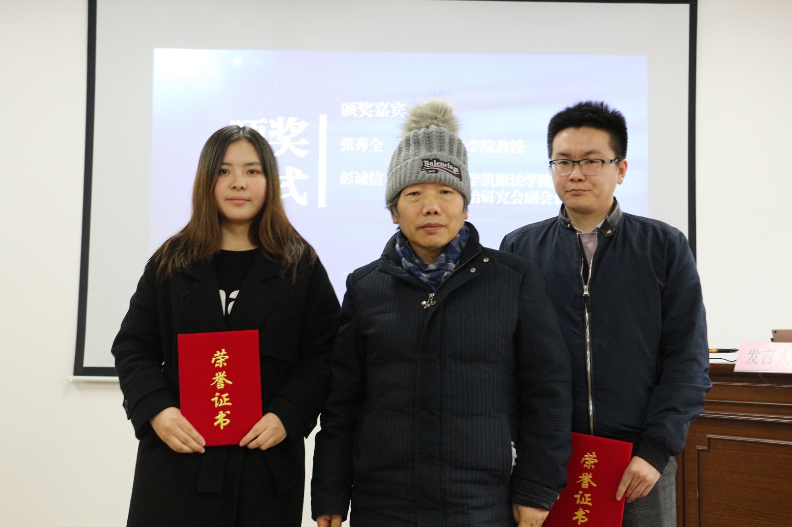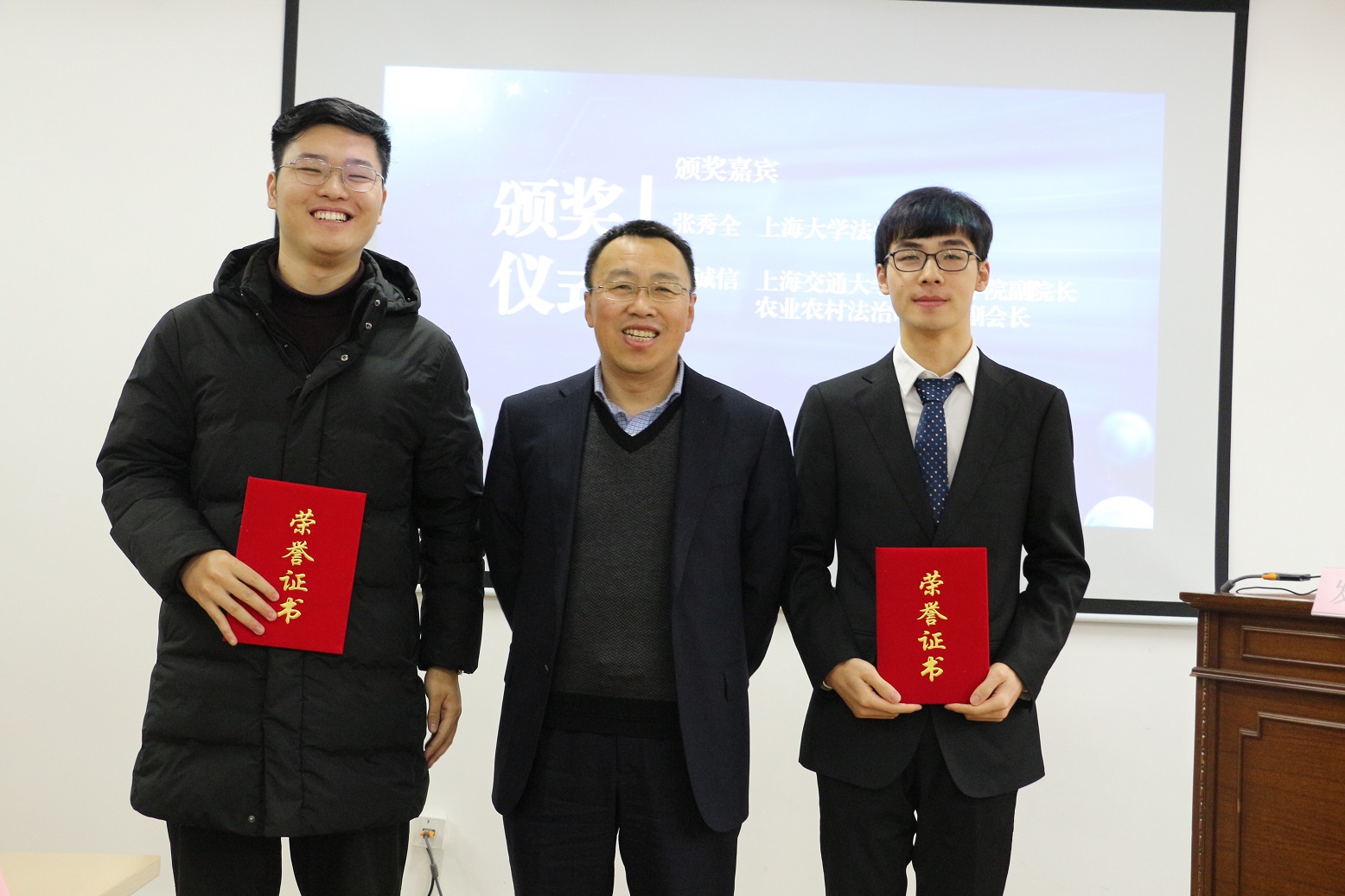 随后,第二环节产权、登记和公证有奖征文颁奖仪式正式进行,365(VIP)英国上市党政办公室法务办副主任陈敬根教授宣读了获奖决定,据悉本次征文共收到28篇投稿,在专家匿名评审的基础上,评出一等奖两名,二等奖四名,获奖作品在《上海法学研究》第19卷以及《产权法治研究》“产权、登记和公证”专题栏目中进行刊发。上海市宝山公证处负责人冯桂娟、上海交通大学凯原英国正版365首页副院长彭诚信教授、英国正版365首页张秀全教授为获奖者颁奖并合影留念。