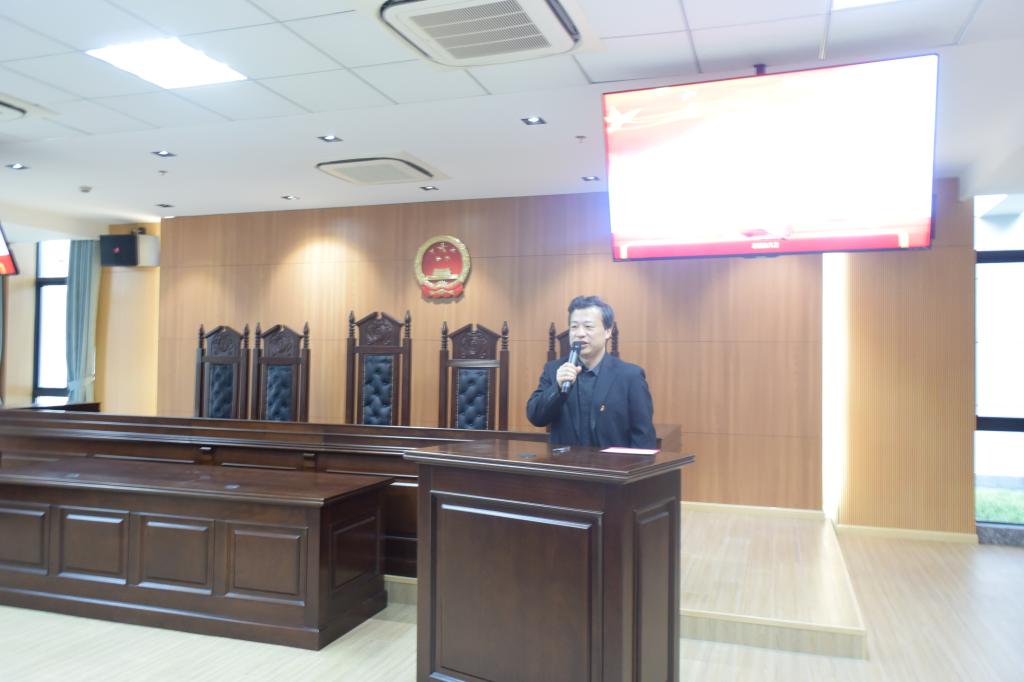 陈敬根老师为模拟法庭观摩赛获奖同学颁奖,审判组获得最佳组别奖。