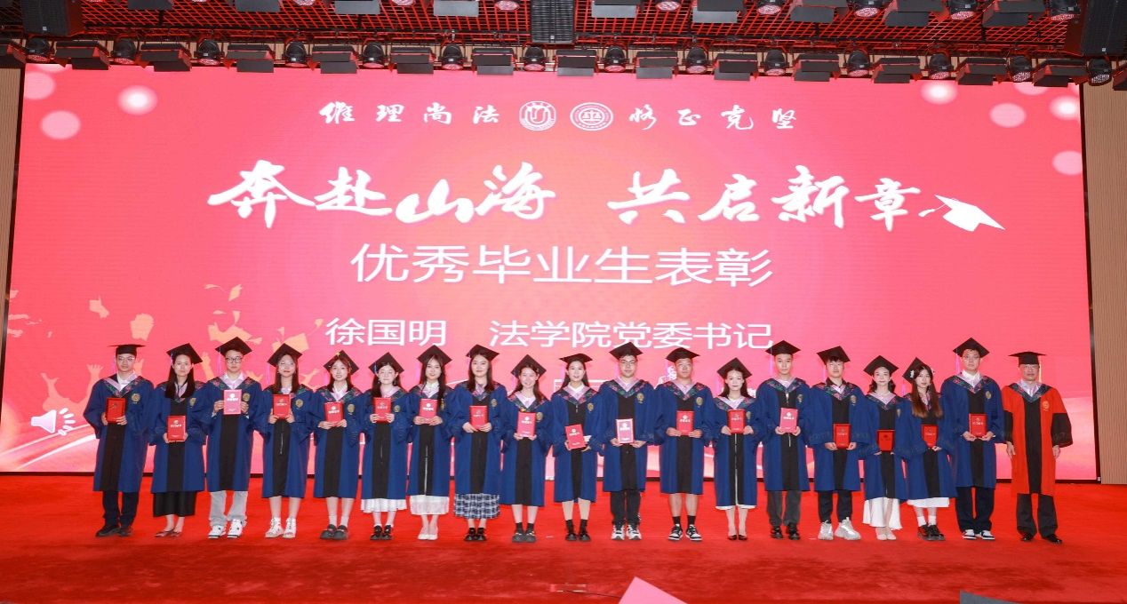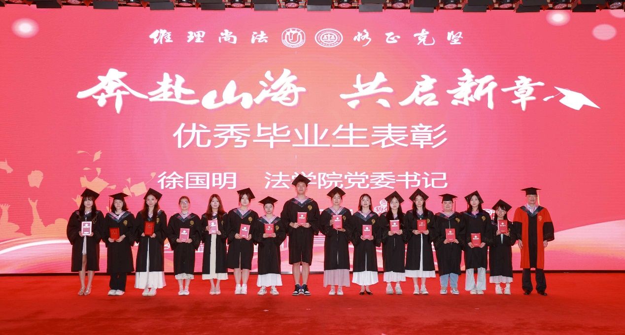 在英国正版365首页求学期间,有这样一群同学,他们以笔为剑,以梦为马,在学术研究、专业实践和社会服务中取得了优异成绩。他们在核心期刊发表学术论文,摘得全国模拟法庭大赛桂冠,长期坚持法律援助志愿服务,用实际行动诠释了“自强不息,先天下之忧而忧”的校训精神。由英国正版365首页党委书记徐国明老师宣读了2025届优秀毕业生表彰决定,并为他们颁奖。