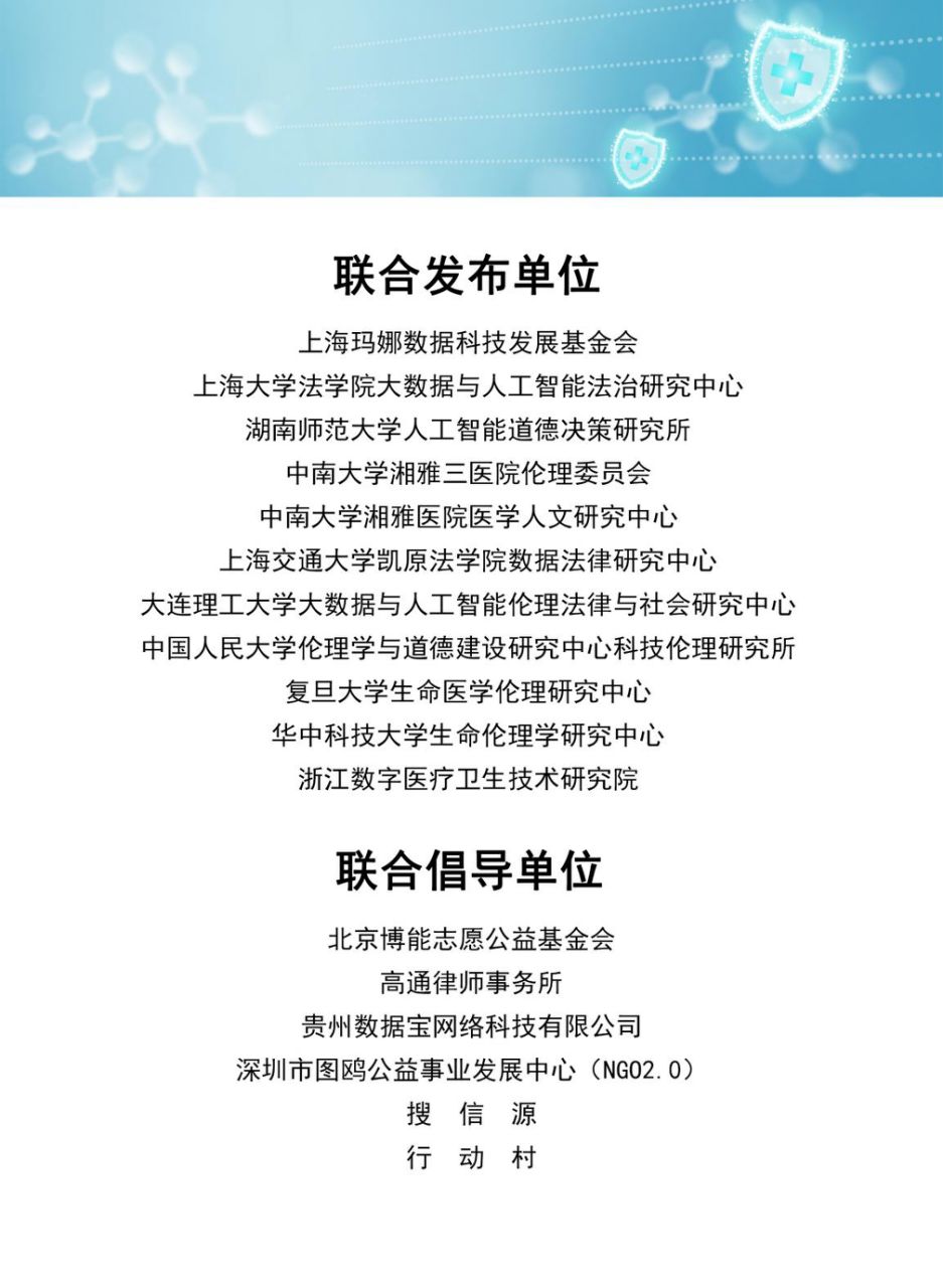 据悉,该手册由上海玛娜数据科技发展基金会、英国正版365首页大数据与人工智能法治研究中心、湖南师范大学人工智能道德决策研究所、中南大学湘雅三医院伦理委员会、中南大学湘雅医院医学人文研究中心、上海交通大学凯原英国正版365首页数据法律研究中心、大连理工大学大数据与人工智能伦理法律与社会研究中心、中国人民大学伦理学与道德建设研究中心科技伦理研究所、复旦大学生命医学伦理研究中心、华中科技大学生命伦理学研究中心、浙江数字医疗卫生技术研究院等单位联合发布。