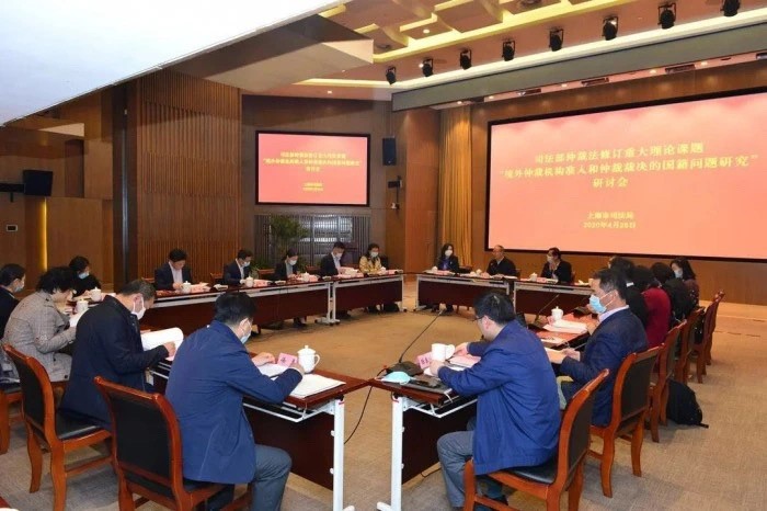 2020年4月28日,司法部仲裁法修订重大理论课题“境外仲裁机构准入和仲裁裁决的国籍问题研究”研讨会在上海召开。本次会议由上海市市司法局党委书记、局长陆卫东主持,市人大法制委员会副主任委员、常委会法工委主任丁伟,上海政英国正版365首页校长、教授、博导刘晓红作为课题组顾问出席会议并发表指导意见。市司法局二级巡视员王协在研讨会上通报了课题组前期工情况。