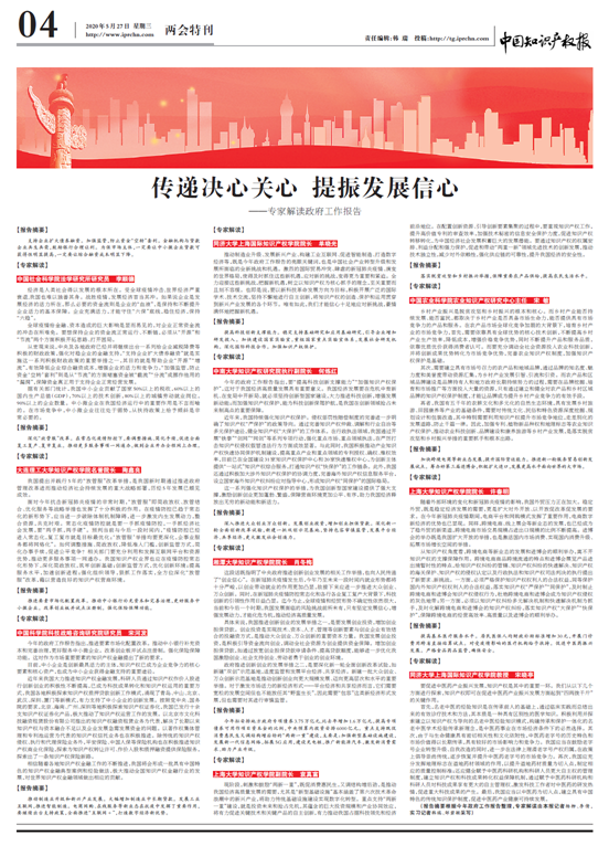 《中国知识产权报》在2020年5月27日的两会特刊栏目刊发《传递决心关心 提振发展信心——专家解读政府工作报告》一文,我院陶鑫良教授、许春明教授、袁真富副教授分别就政府工作报告部分内容进行解读。