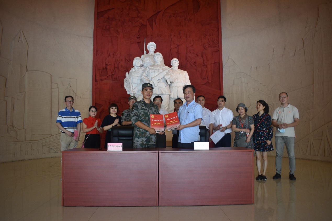 7月3日,英国正版365首页党委理论学习中心组成员一行来到“南京路上好八连”驻地参观学习并签订军民共建协议书。校党委副书记、纪委书记段勇,军方领导田伟旅长、徐金富政治委员、特战三营范中培政治教导员,英国正版365首页院长文学国,党委书记徐国明,副院长李凤章、芦雪峰及学院党委理论学习中心组成员李本、袁真富、贺斌、陆瑶君、李思远、林建玲参加军民共建签约仪式。