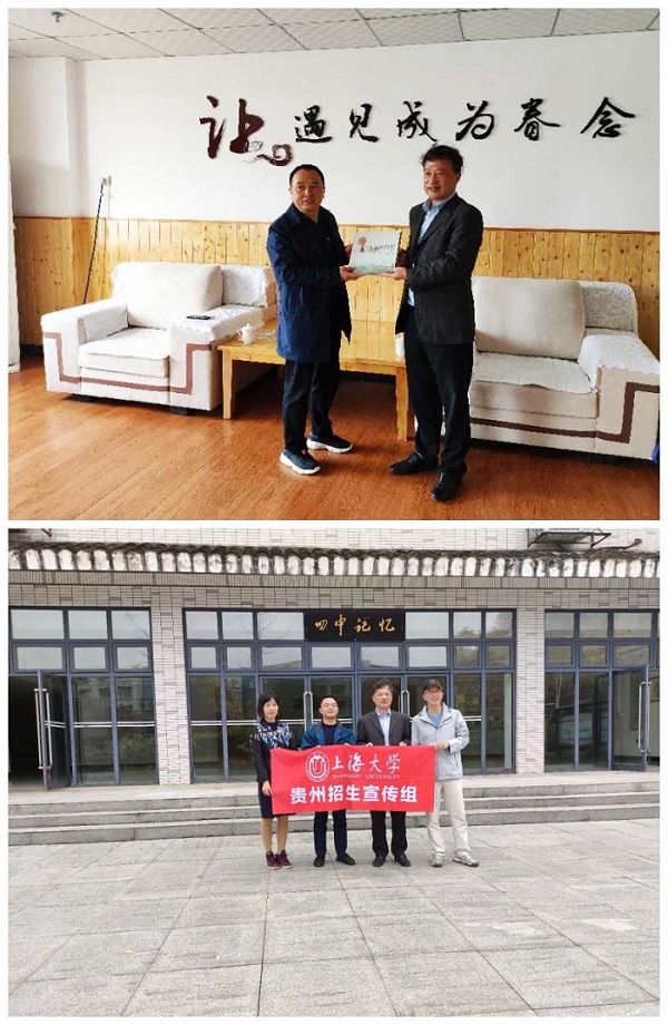 10月29日,上大招宣组来到遵义市第四中学拜访,与四中党委副书记代端学、招办主任丁鹏进行座谈交流。徐国明书记感谢遵义四中一直以来对上大招生工作的支持,近4年共有50名学生考入上大,希望共同努力、深挖潜力,开展更多形式的合作,继续做好2021年的招生。代书记介绍了学校的365和人才培养特色,表示上海和遵义是结对帮扶市,愿意为365(VIP)英国上市输送更多的学子。徐国明书记向遵义四中代端学副书记赠送了《百年上大》、《永远的校长》书籍,丁鹏主任还带领招宣组老师参观了富有人文气息的美丽校园。