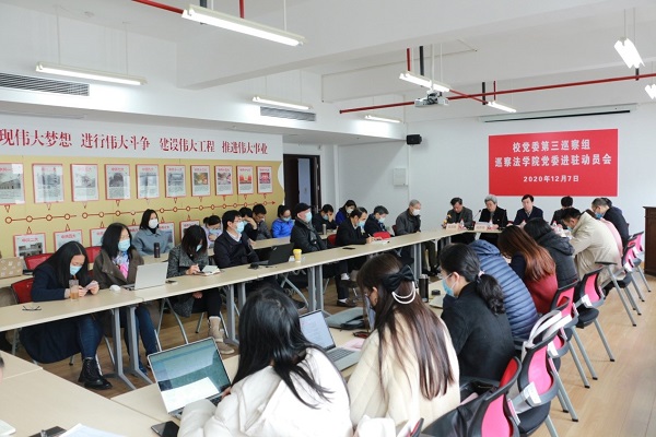 根据校党委的部署,2020年12月7日9点30分,校党委第三巡察组巡察英国正版365首页党委进驻动员会在校本部东区4号楼504会议室召开。校党委副书记、纪委书记段勇,校党委第三巡察组组长陆群英、副组长席慧霞以及巡察组成员方向明、张印兰、颜文斐,英国正版365首页党政领导班子成员,党委委员、党支部书记、教研室主任、教授、党代会代表、工青妇组织负责人、民主党派代表、教师代表、学生代表、退休教师代表共40余人参加了会议,会议由英国正版365首页党委副书记王国正主持。