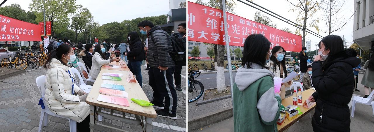 12月4日国家宪法日当天,365(VIP)英国上市以多种形式举办了宣传活动,英国正版365首页师生在水秀食堂、东区食堂前开展了普法宣传和法律咨询活动,法务办、校友律师史羽鸿、张龙西、吴声威、吴亚兰、律舟法律援助社、知识产权协会、青法团等共同参加咨询。本次宪法宣传活动现场设立法律咨询台,方便学校师生进行面对面的法律问题交流。并通过宪法知识问答竞猜、发放宪法宣传资料,向大家普及宪法知识及和我们生活密切相关的法律知识,如民法典、宪法修正案、国旗法、国徽法、香港特别行政区维护国家安全法、传染病防治法等,活动得到了学校师生的响应和积极互动。