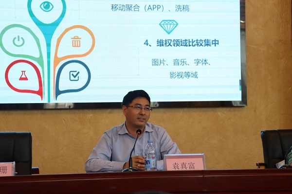 在讲座中,袁真富老师引用多个真实案例,向同学们介绍了当前版权诉讼的现状,结合同学们熟悉的动漫、音乐和短视频来举例分析版权变化趋势,并对当下热门的IP产业版权问题进行了详细讲解。