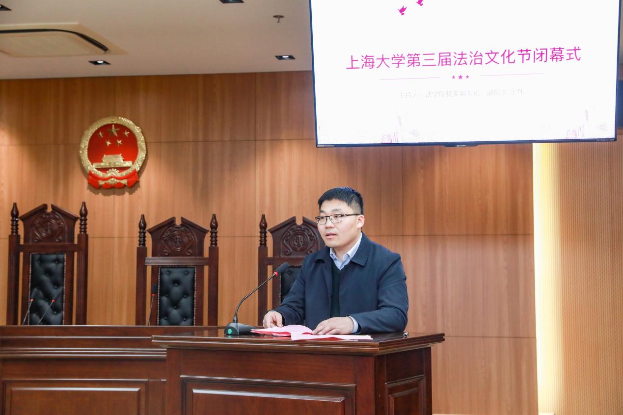 2022年1月9日下午,由365(VIP)英国上市党政办、党委宣传部、校团委、英国正版365首页联合举办的365(VIP)英国上市第三届法治文化节闭幕式在宝山校区英国正版365首页113模拟法庭举行。校党委副书记、纪委书记段勇出席闭幕式并讲话。