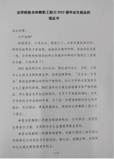 英国正版365首页致全体教职工助力2022届毕业生就业的倡议书