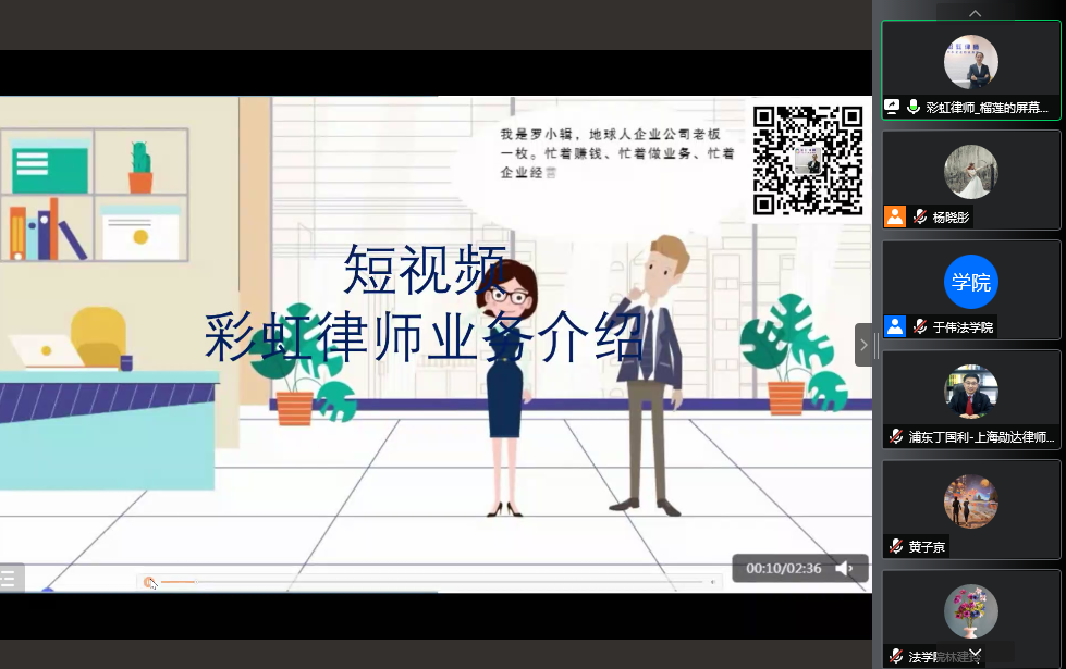 彩虹律师(上海图堃律师事务所)法务总监吉晶通过视频介绍了彩虹律师业务,同时详细介绍了招聘岗位、岗位职责、薪资、对青年律师的培养等相关内容。