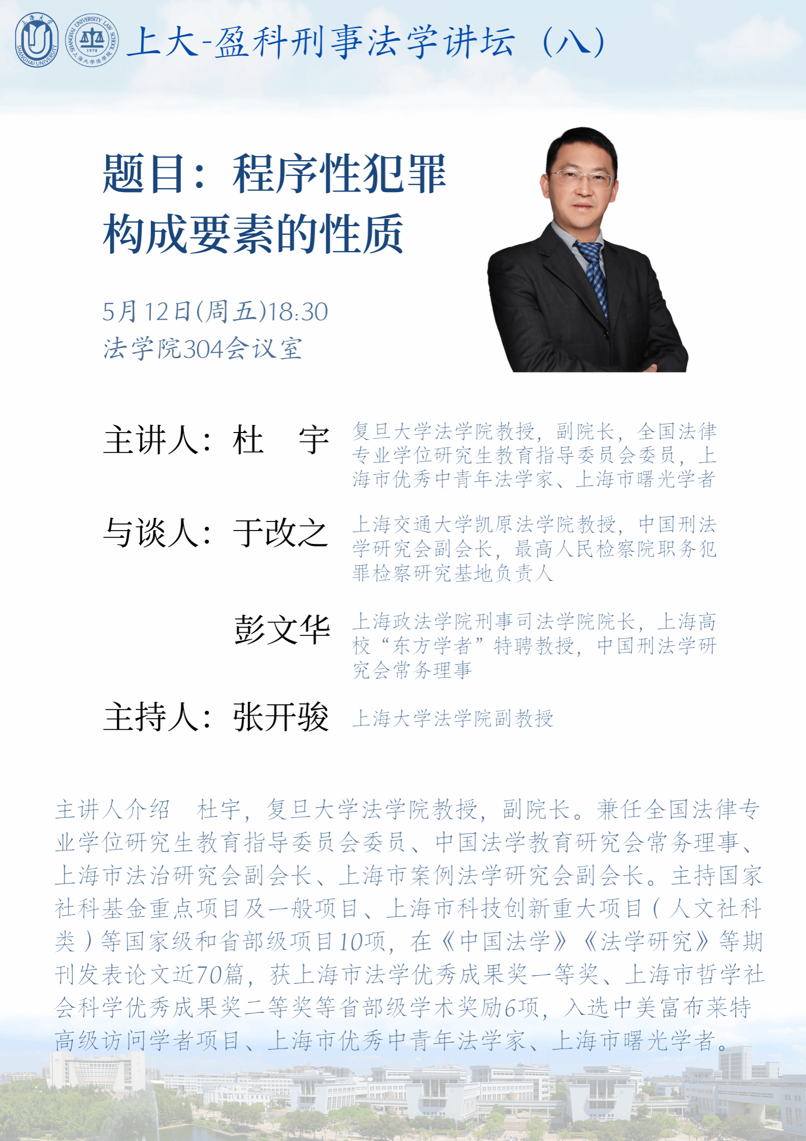 上大-盈科刑事法学讲坛第八讲“程序性犯罪构成要素的性质”顺利举行