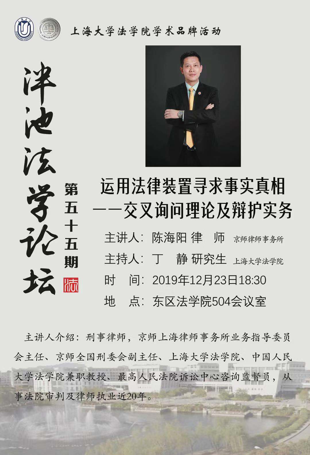 泮池法学论坛第55期预告:运用法律装置寻求事实真相——交叉询问理论及辩护实务